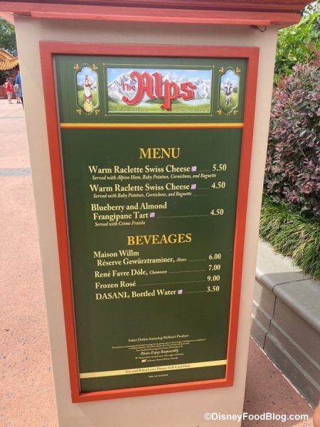 The Alps is following the same safety precautions as the other booths in the World Showcase with distancing markers, line dividers, hand-sanitizer stations, and plexiglass barriers.