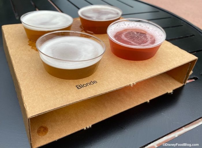 Although the beer flight has been at Block and Hans during previous years with the same beers, Disney hasn’t been featuring flights at other booths this year. However, the food booths are giving bigger pours than previous years with 6 or 12 oz drinks since flights aren’t being offered at most locations.