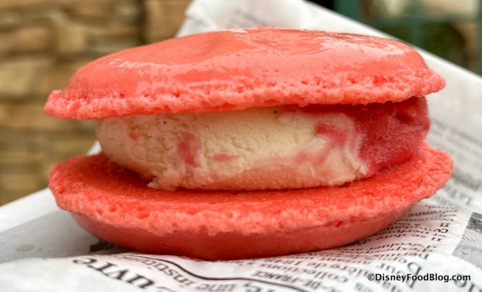 We loved how colorful this sweet treat was! The macaron was soft but held together pretty well, and the blend of the sorbet and ice cream was cool and refreshing. It was really flavorful and sweet, but also light and fresh at the same time. It was particularly nice after a walk around World Showcase in the Florida heat!