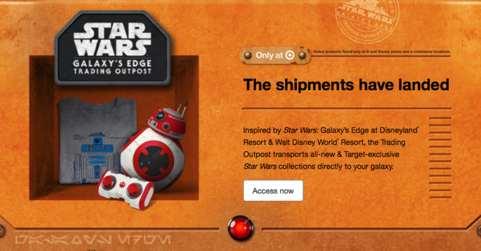 Before you even fill up your cart will all the cool merchandise, you should definitely check out the Target app. It’s got a whole area dedicated to Galaxy’s Edge with videos featuring Disney Imagineers talking about how they designed the land and its attractions.