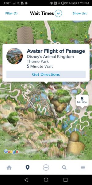 We aren’t exaggerating when we say five minutes. Since the attraction first opened, Flight of Passage consistently has had one of the longest posted wait times, frequently topping 120 minutes or more! But now — it’s a walk-on.