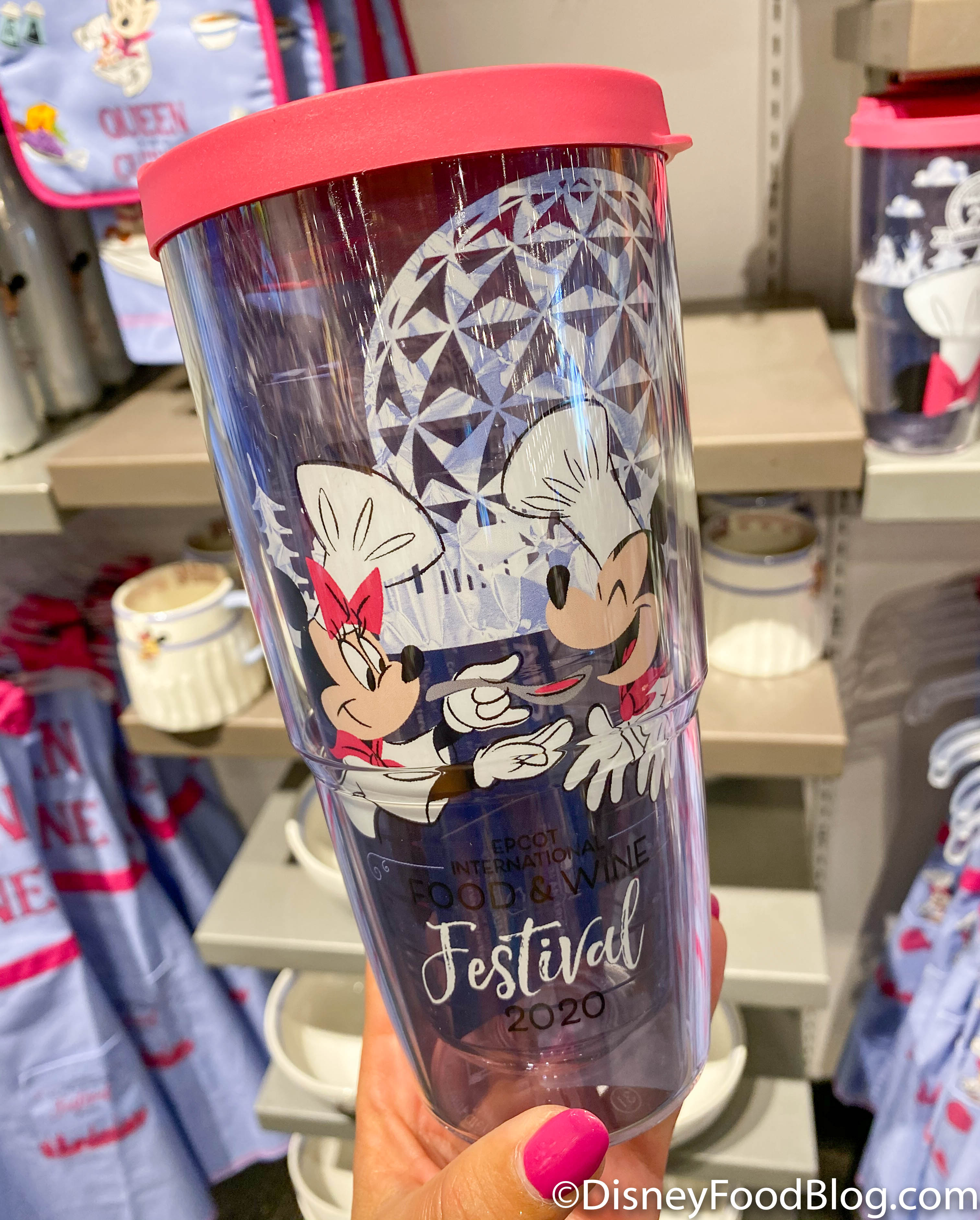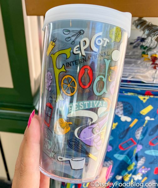 We also spotted this cute Festival Tervis Tumbler featuring Mickey and Minnie in front of Spaceship Earth. Looks like Minnie’s been doing some cooking and Mickey’s getting the first bite!