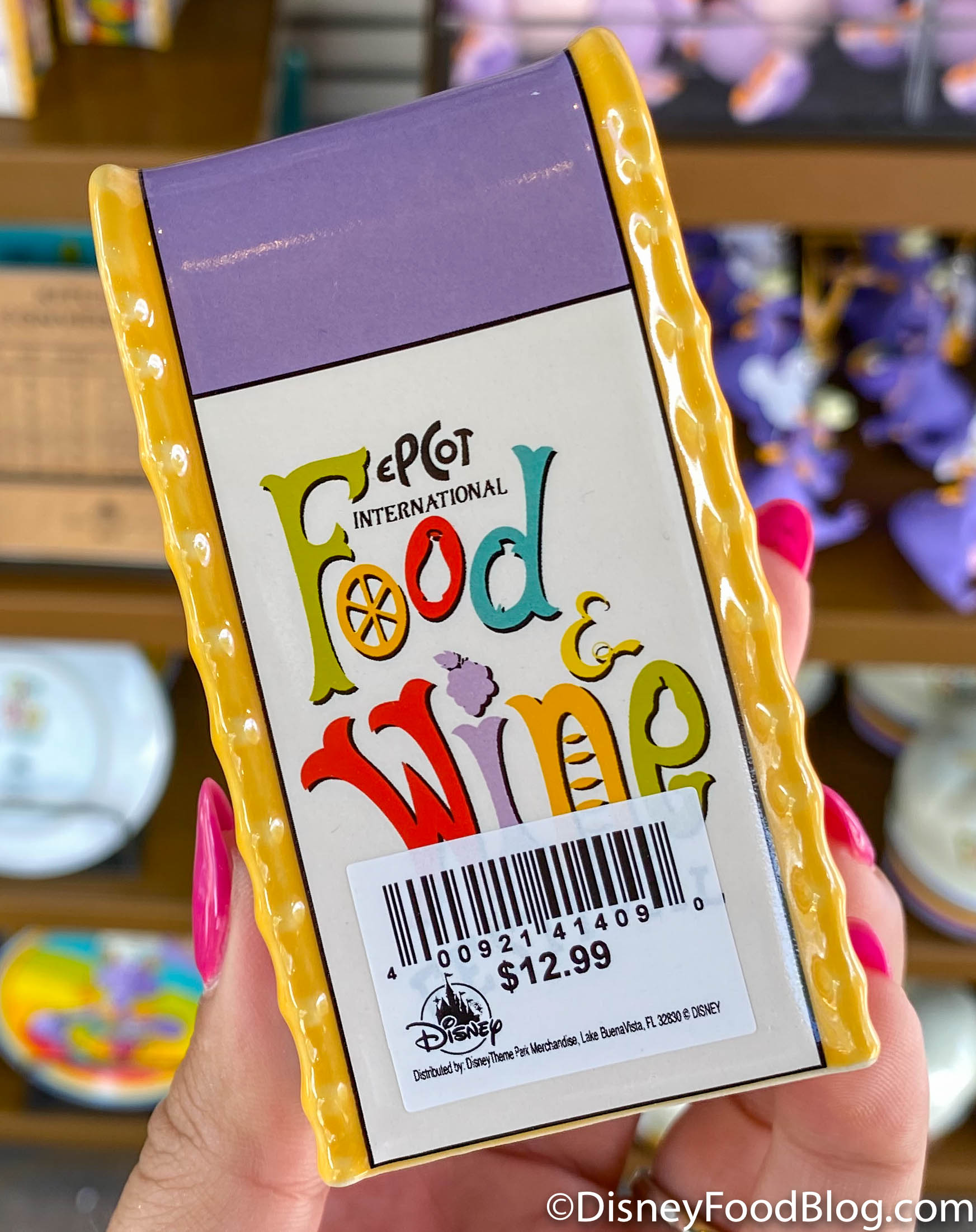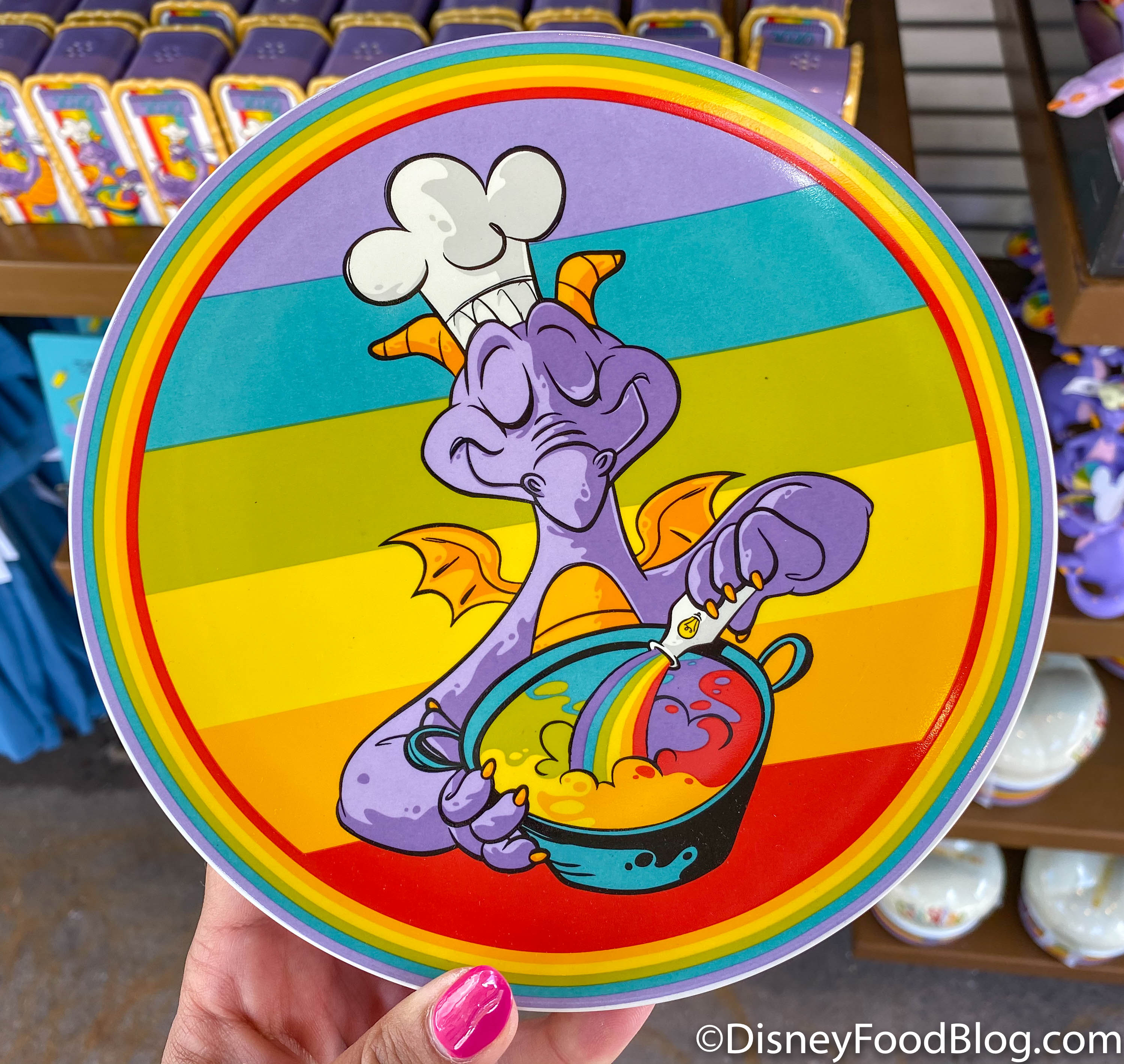 The rainbow theme continues with this fun Figment Plate we found at the Festival Market on the way to World Showcase for $14.99.