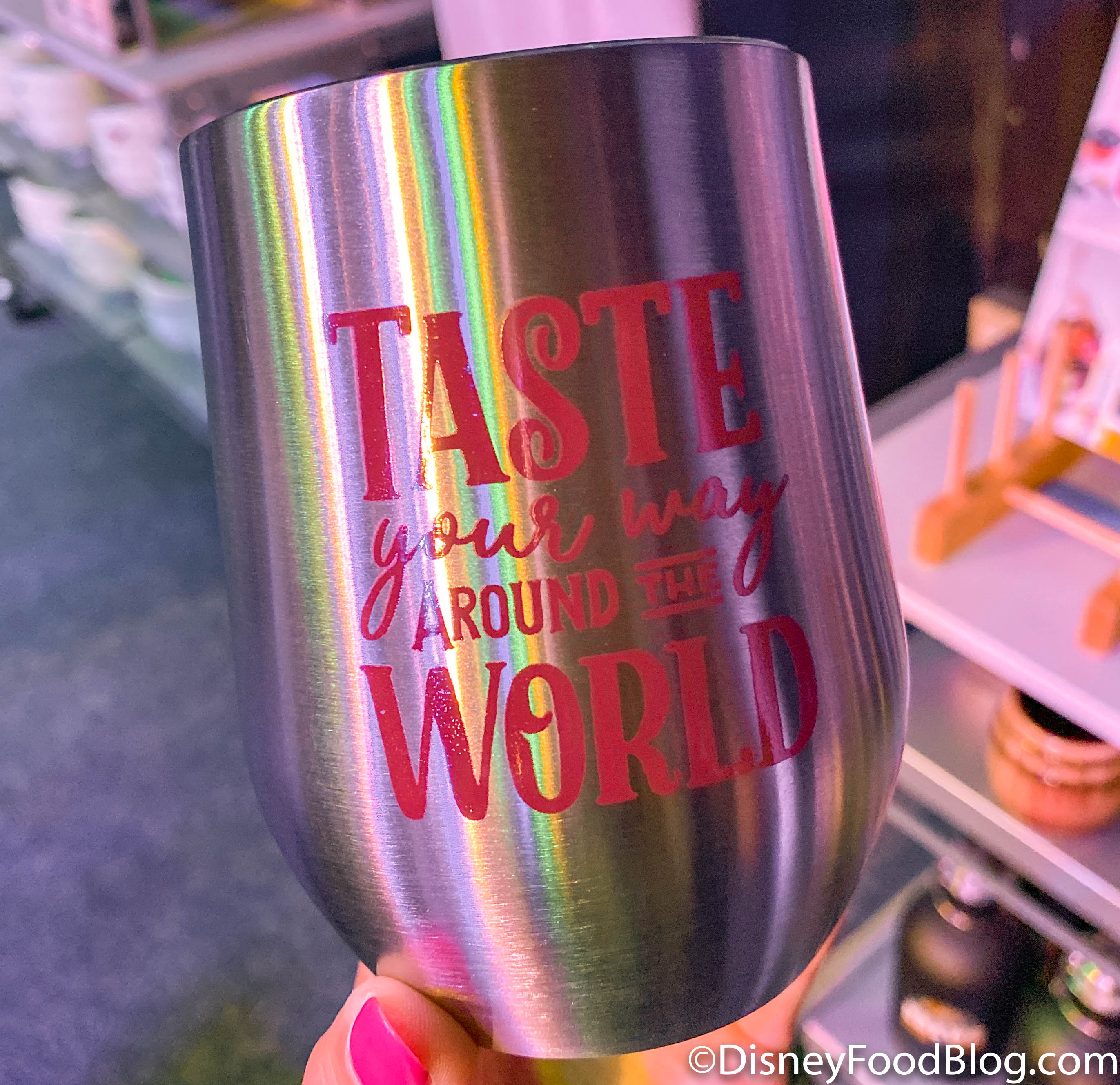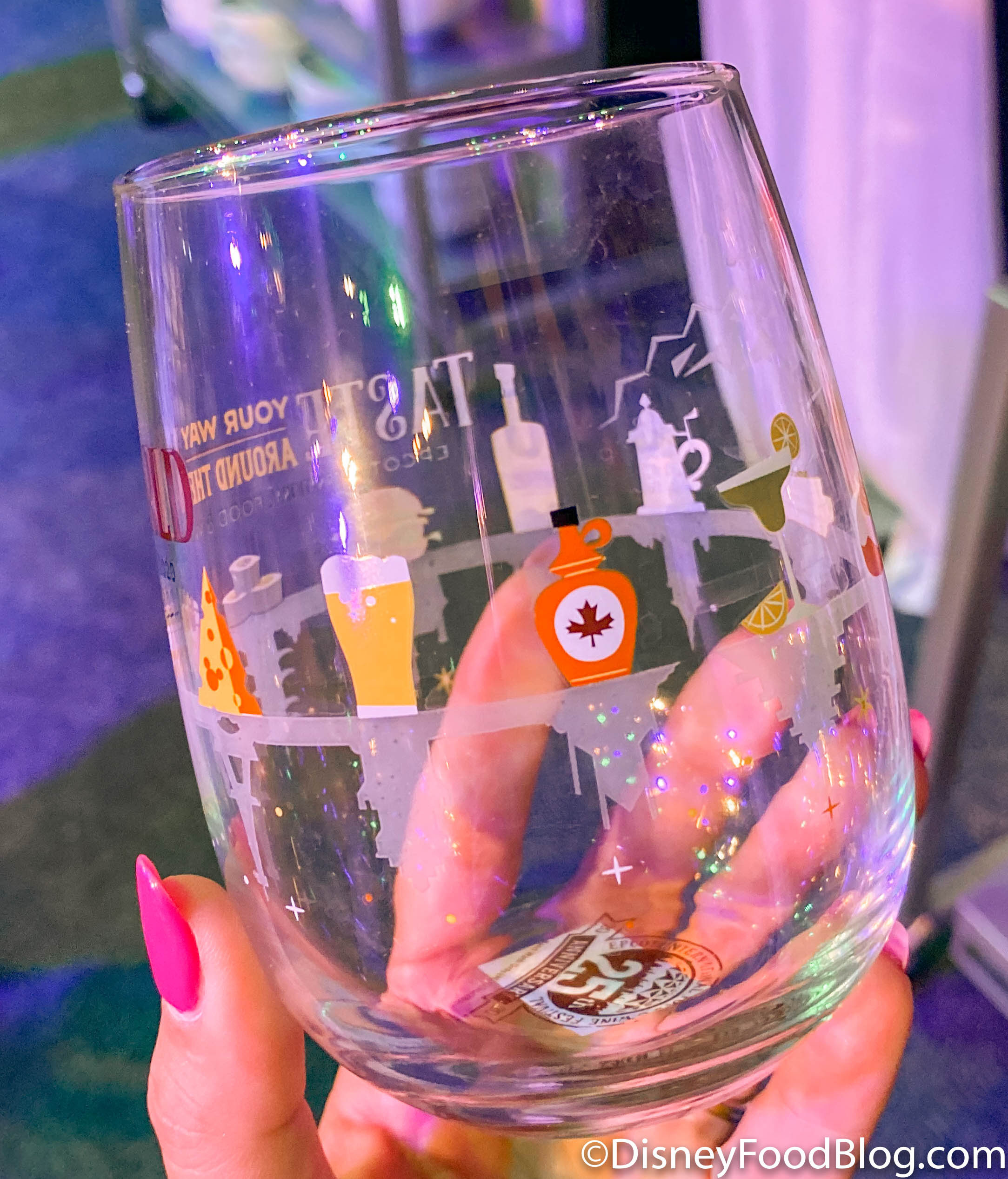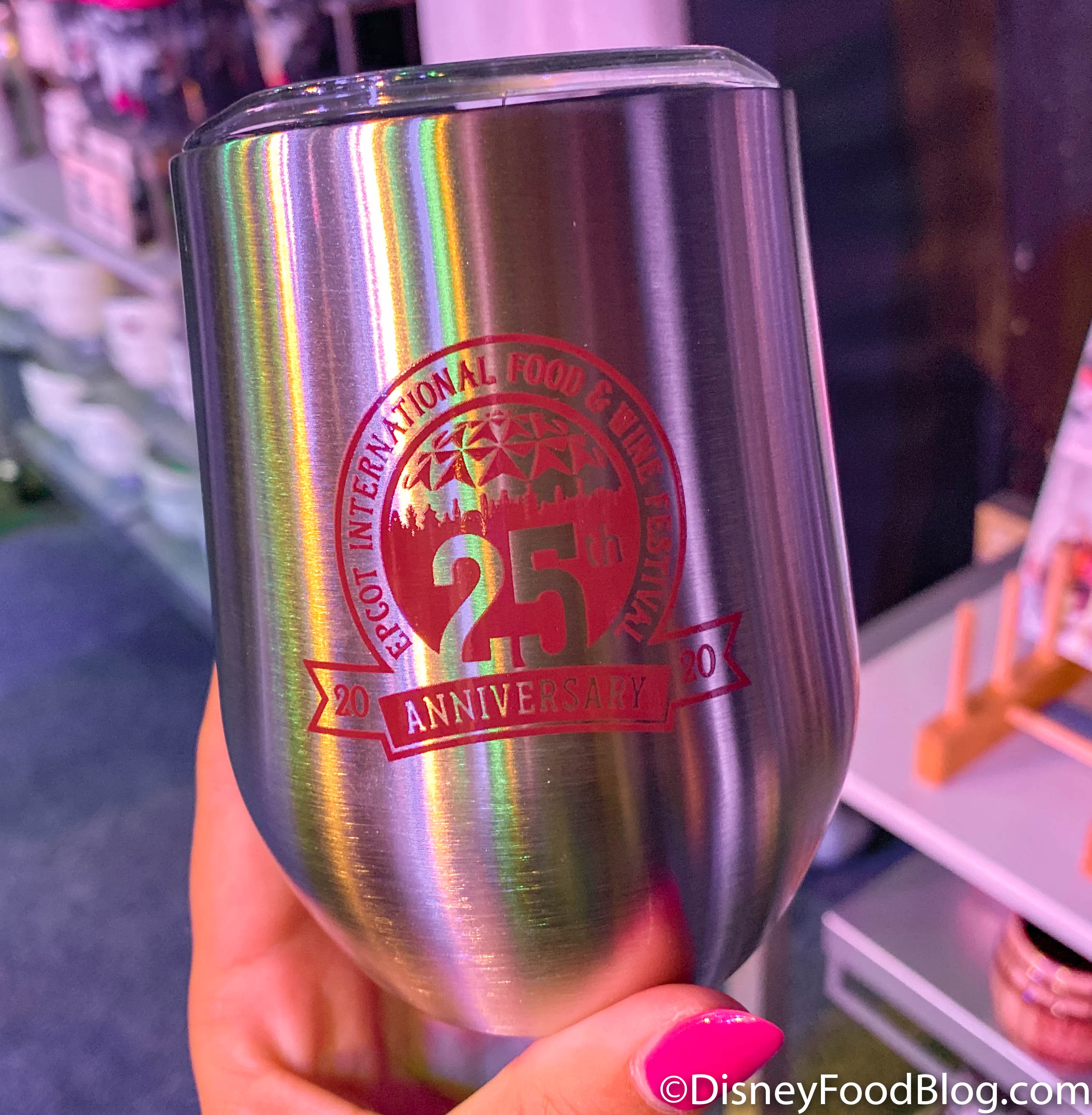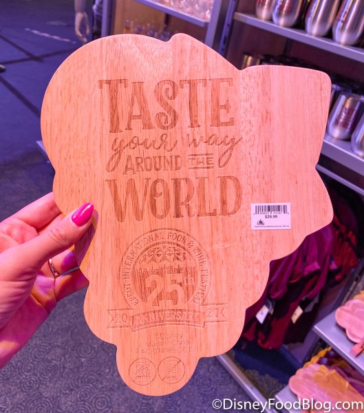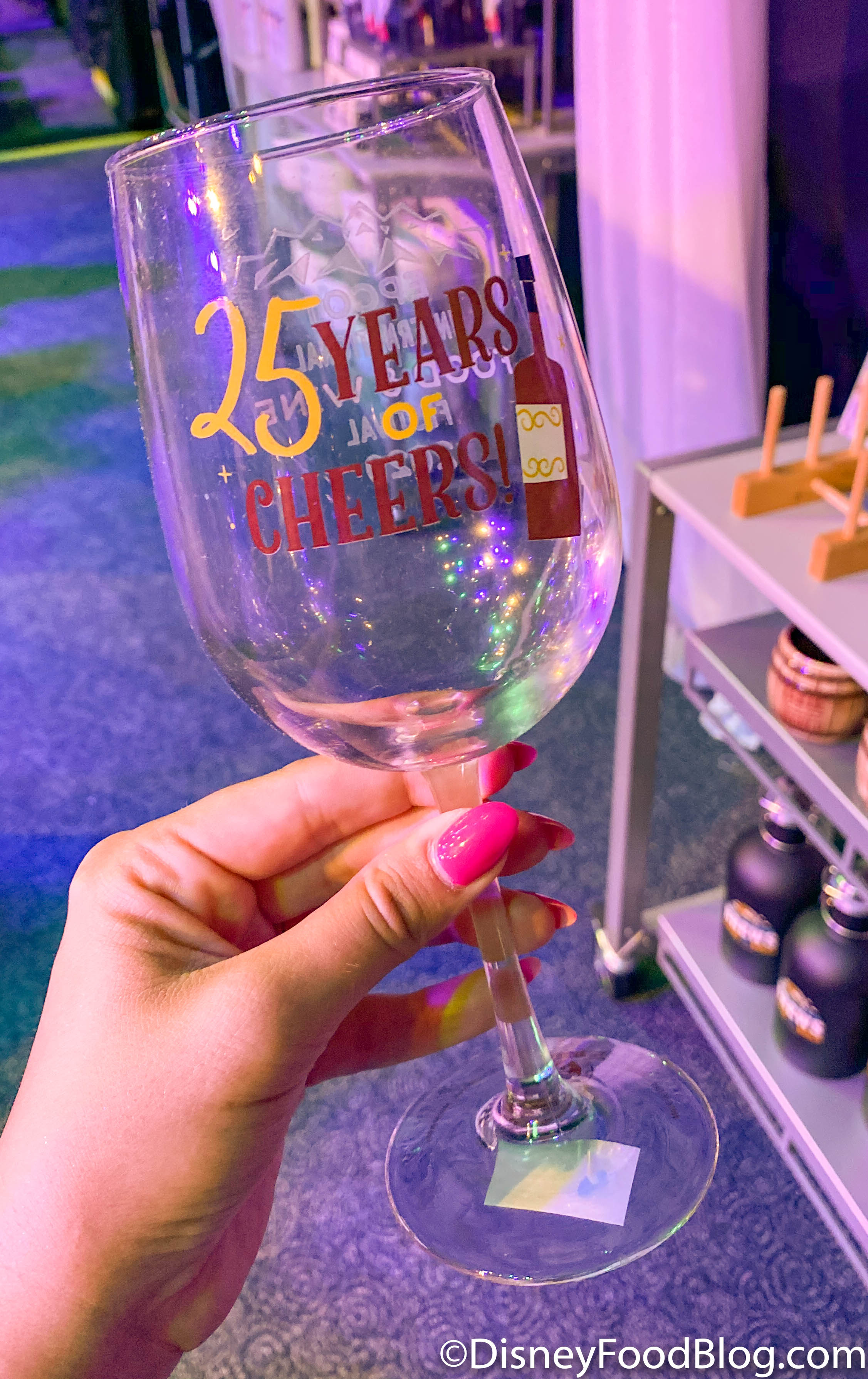 25 years of the Food & Wine Festival — we’ll definitely raise our glasses to that! We spotted this wine glass at World Showplace for $14.99.