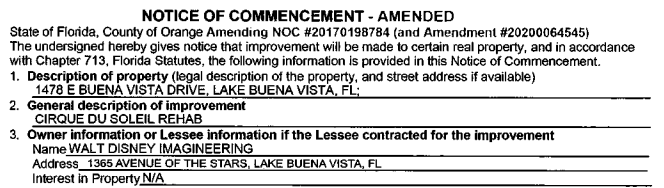 The permit is an extension of one that was filed back in January for the “Cirque du Soleil Rehab.” The original expiration date was for August 31st, but now the expiration date is October 31st. This gives Imagineering teams another two months to wrap up work on the building.