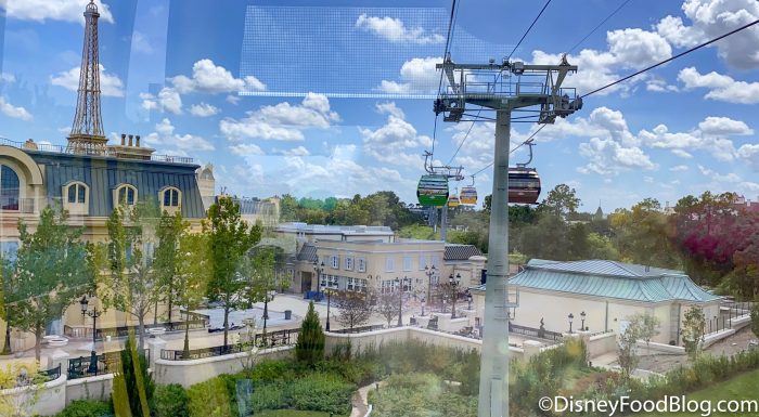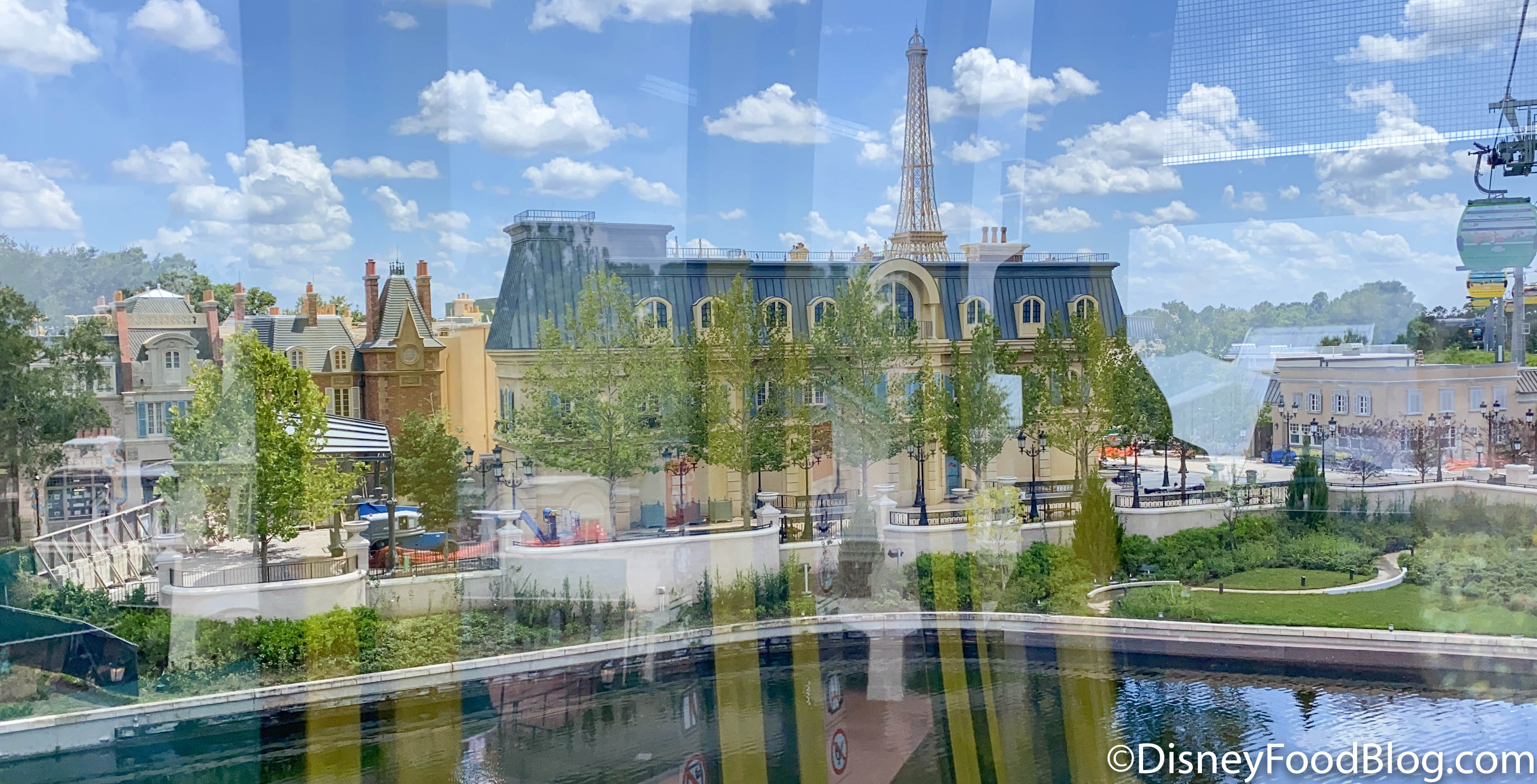 From new rides to new pylons, we’re really looking forward to seeing all of the new experiences that will eventually be available at EPCOT. Just yesterday, we flew past EPCOT in the Disney Skyliner and got a peek at the construction going on in the France pavilion.