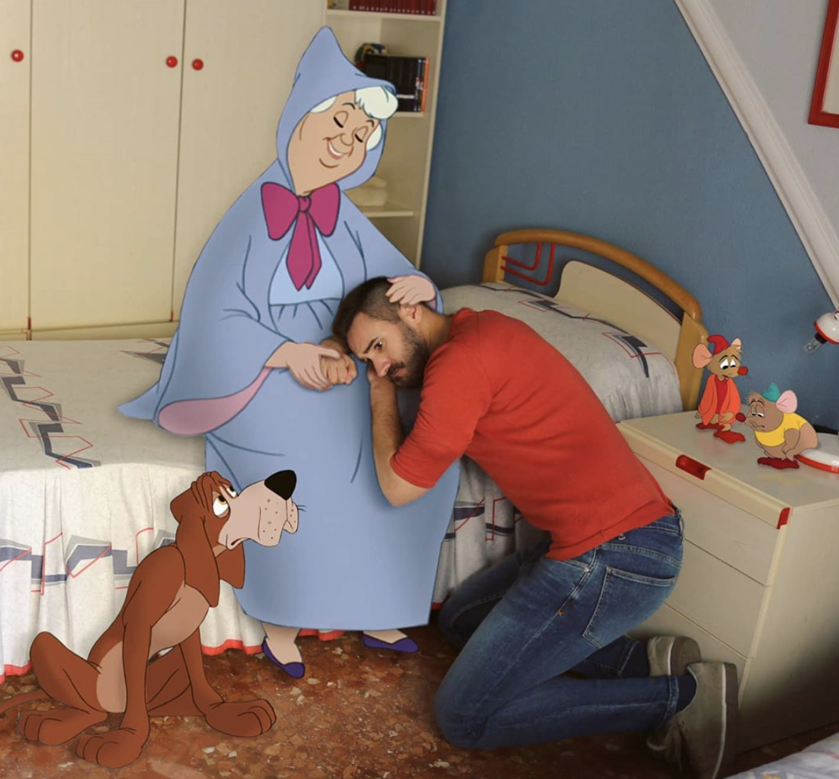 Things are getting a little sentimental here! Good thing Cinderella’s Fairy Godmother is there to cheer him up.