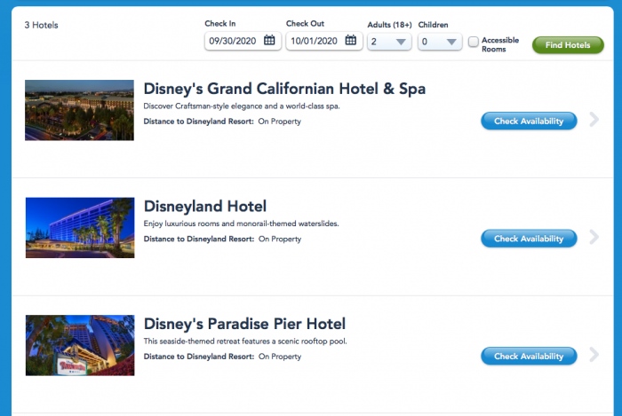 Disneyland has cancelled guest reservations at their hotels several times over the last few months. Most recently, guests could only make hotel reservations for dates after September 15th. Now, reservations at the Disneyland Resort Hotels are not available until October 1st.