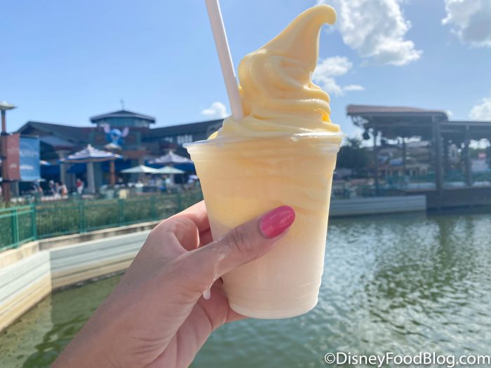 Earlier today, we heard about a new Pina Colada DOLE Whip Float that had made its way over to Disney Springs, and (of course) we RAN over to try it. It’s a hard job, but someone’s got to do it!