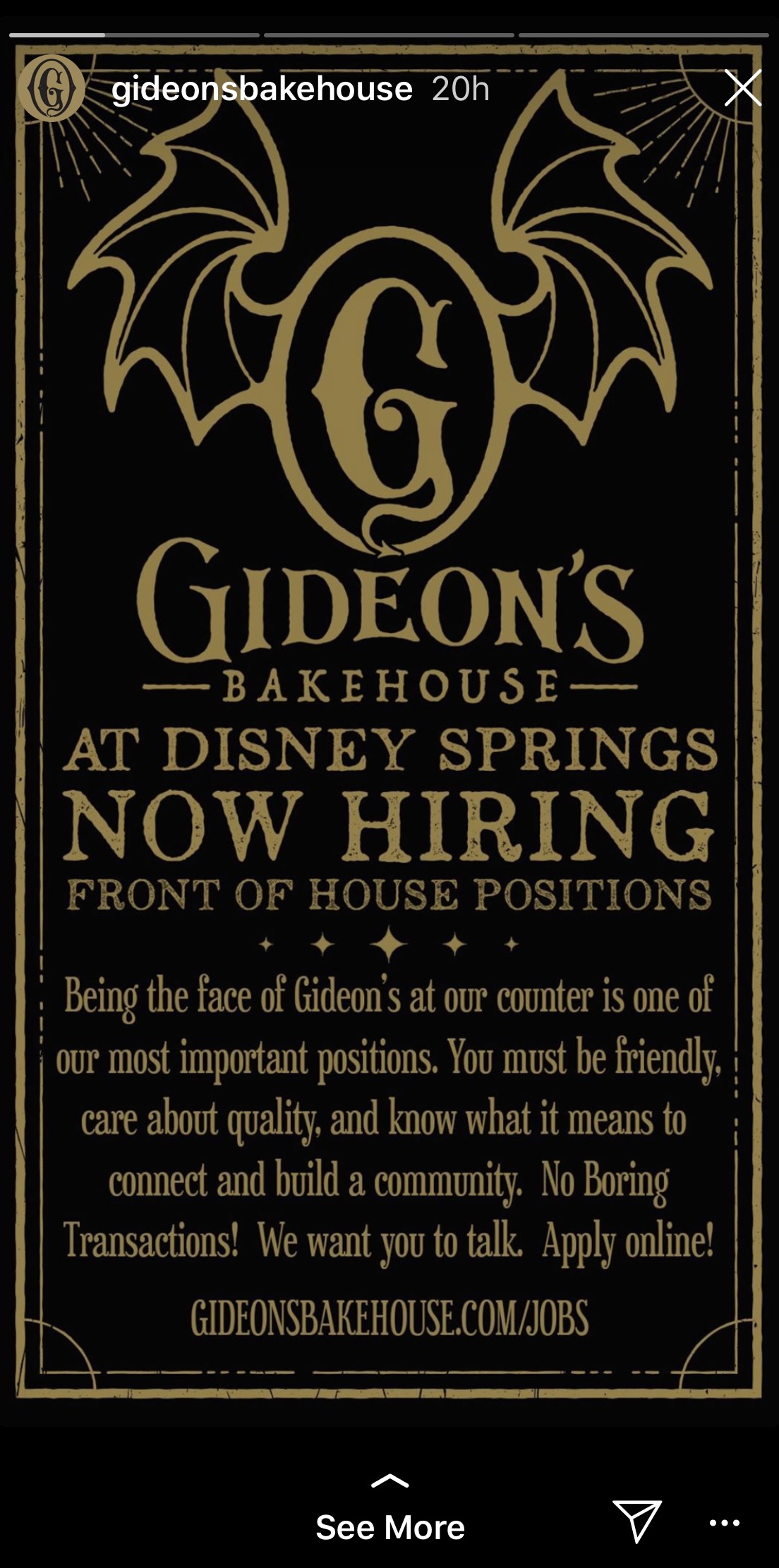 If surrounding yourself with the delicious cookies all day long sounds like an absolutely dream to you, then you may want to join Gideon’s team! They are actually now hiring for their Disney Springs location. We spotted this announcement on their Instagram. If you’re interested, you can check out their website and apply for a position with them.