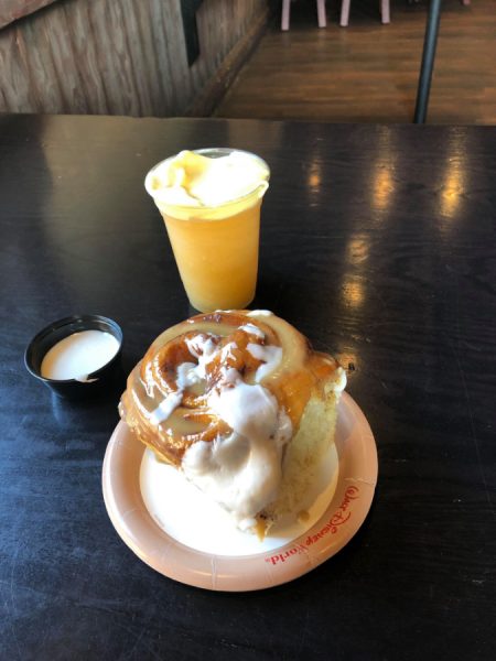 Unfortunately, our favorite place to get this yummy snack has been closed. Until today! That’s right: Gaston’s Tavern opened this morning, and one of our readers was first in line to get the first cinnamon roll of the day!