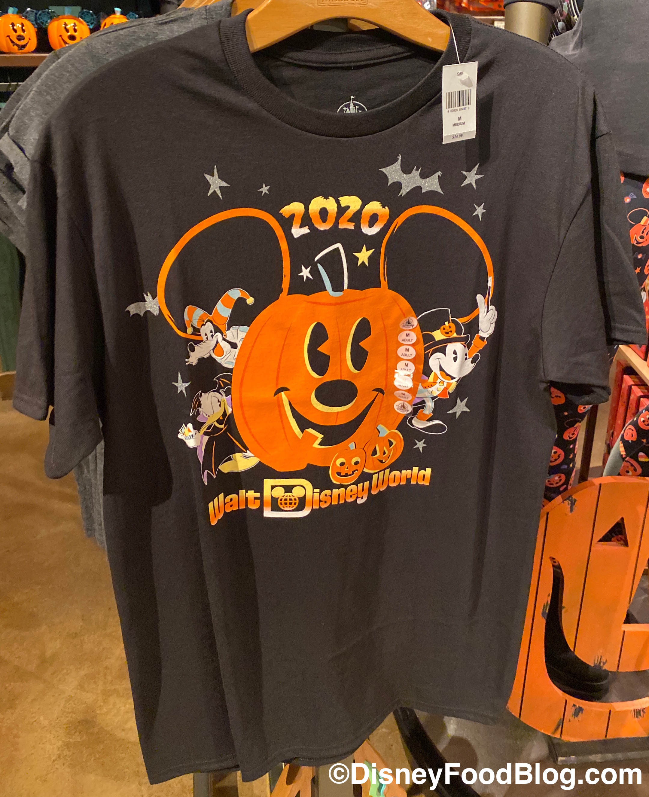 Popcorn buckets weren’t the only spooky addition to the park! We also spotted several new Halloween t-shirts in Riverside Depot. There’s a Halloween 2020 T-Shirt featuring an adorable Mickey-shaped pumpkin for $24.99.