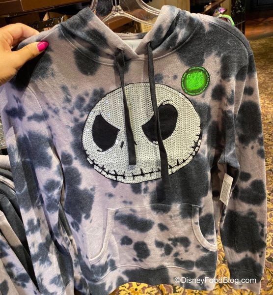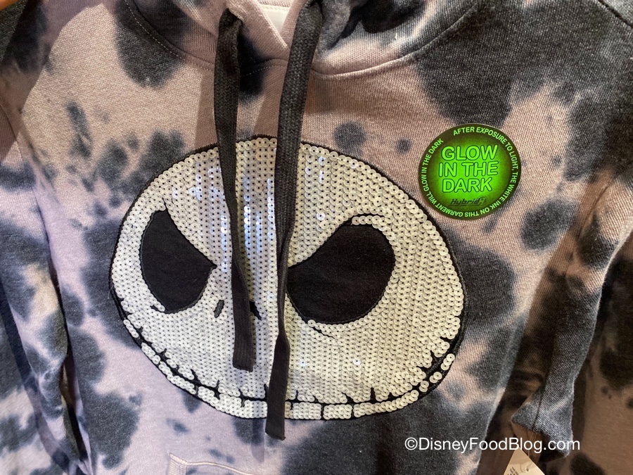 For starters: Jack Skellington’s smirking face on the front of the hoodie is made of sequins!