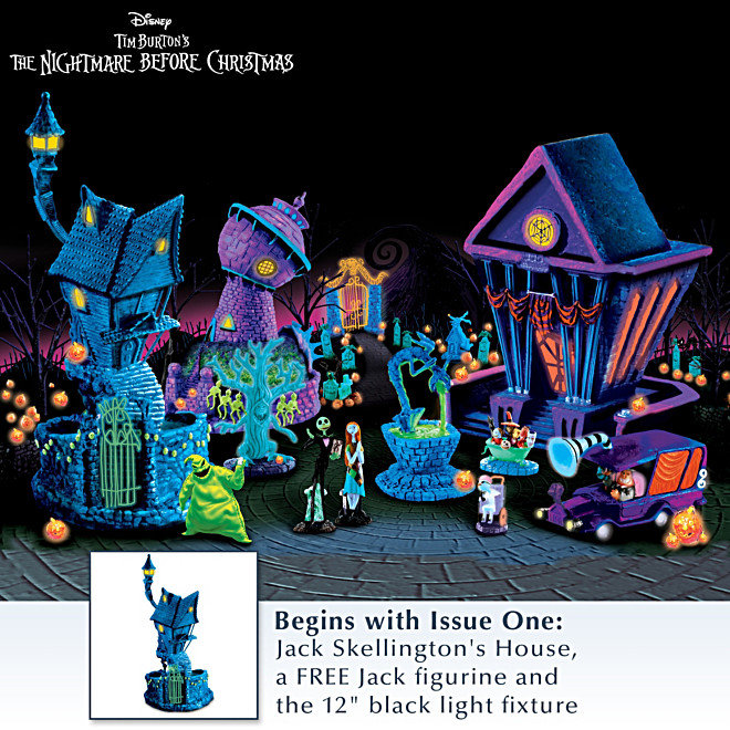 What’s this? What’s this? The Nightmare Before Christmas Black Light Village And Figurines are positively eerie! There’s Halloween Town in all its creepy glory, along with some of our favorite characters from the movie! And it all glows with a black light effect — SPOOOOOKKKYYY!