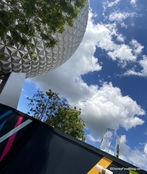 Not only is most of the area still crisscrossed with construction barriers, but we’ve spotted permits for the transformation multiple times over the past few weeks. Plus, have you seen the new throwback entrance pylons? So pretty! We have to say, even though we forget about the EPCOT Neighborhoods sometimes, we’re still super happy that they’re in progress!