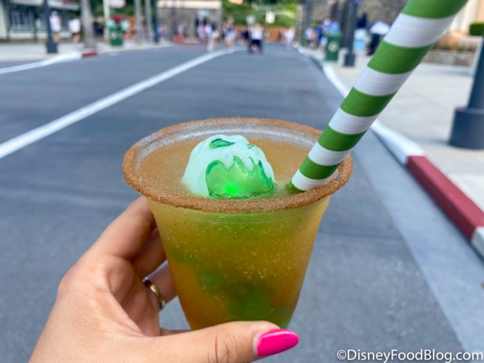 That said, we couldn’t really taste the Crown Royal Apple, so it tasted more like apple juice, rather than a cocktail. If you’re looking for a strong cocktail then you might wanna look elsewhere. Like, anywhere outside of Disney World property. (Kidding!) The upside is that both versions of the drink come with a poison apple glow cube! Hooray for free souvenirs!