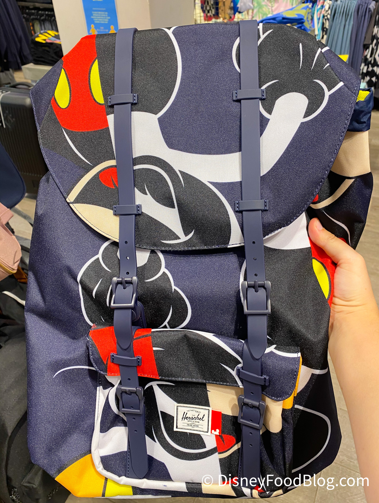 If you’re in the market for a new backpack, head over to Curl Surf in Downtown Disney! They currently have the latest Herschel x Mickey Mouse collection in stock! Whether you’re looking to carry around a little or a lot, there’s a bag for just about everyone. Starting off, there’s this adorable mini-backpack!