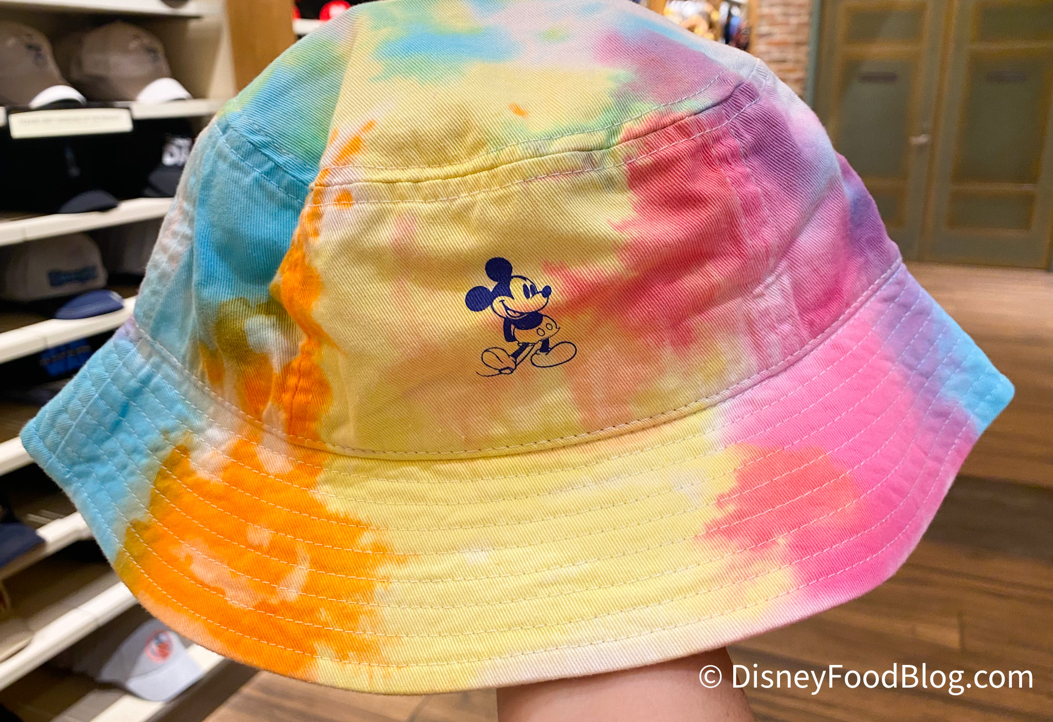 Continuing on our adventures through World of Disney, we discovered a trio of bucket hats that we think are très chic. The first one comes in a fun tie-dye design, featuring Mickey Mouse!