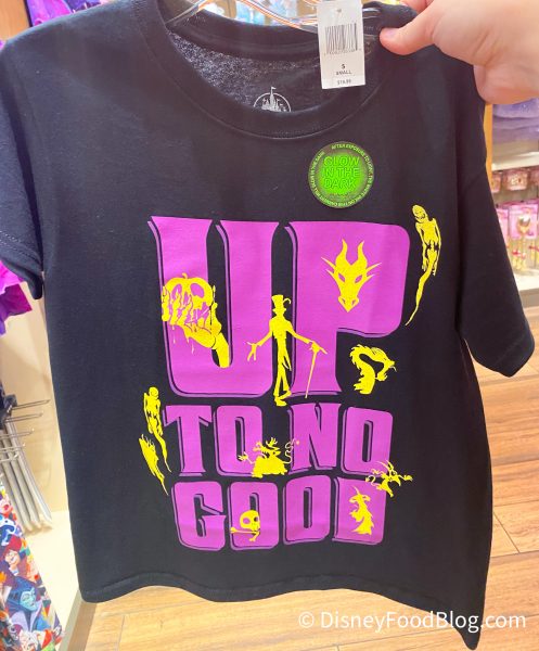 Kids can also get in on the t-shirt action on this recent trip to Downtown Disney. We spotted this adorable glow in the dark tee that says “Up to No Good!”