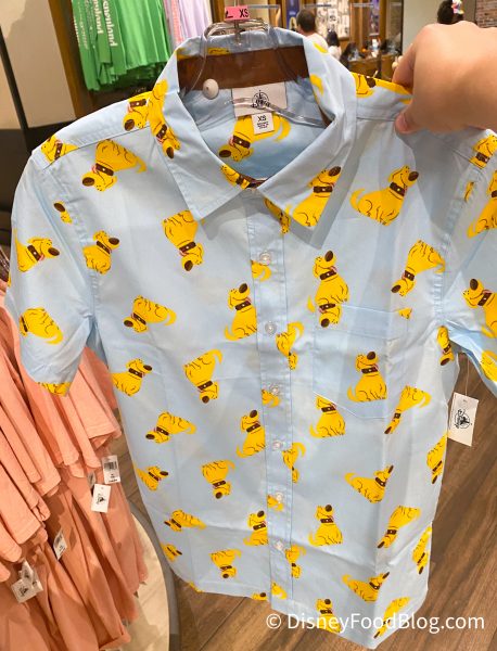 And if you’re going to don a bucket hat during these final weeks of hot weather, be sure to match them with a short-sleeve button-down shirt! We’ve already spotted several of these dapper shirts in Downtown Disney, and on our most recent trip, we spotted shirts featuring Dug…