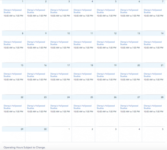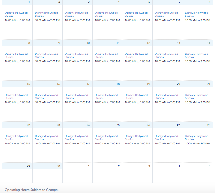 Currently, the hours at Disney’s Hollywood Studios are listed as the same current operating hours of 10AM-7PM.