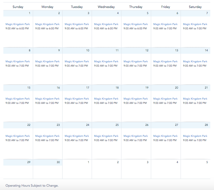 The hours at Disney’s Animal Kingdom are also the same as the current operating hours of 9AM-5PM.