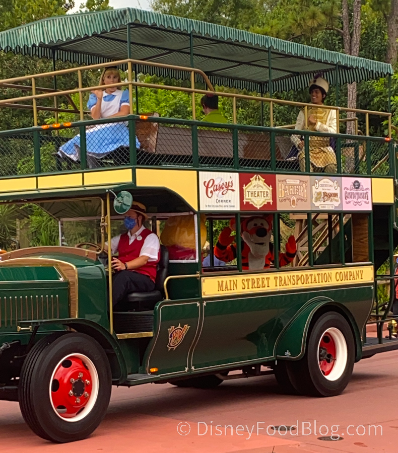 So grab your umbrella (or raincoat), because we spotted the Rainy Day version of one of the Fantasyland Character Cavalcades at Magic Kingdom! If you’ve never witnessed a rainy version of a parade in Magic Kingdom, let us explain. To help shelter characters from the elements, they typically hitch a ride in one of the Main Street Transportation Vehicles!