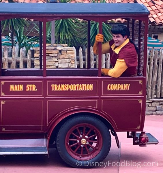 But NO ONE does a Rainy Day Cavalcade like this guy. It’s GASTON, who is ALWAYS a guest favorite at the parks (well, he is, if you ask HIM).