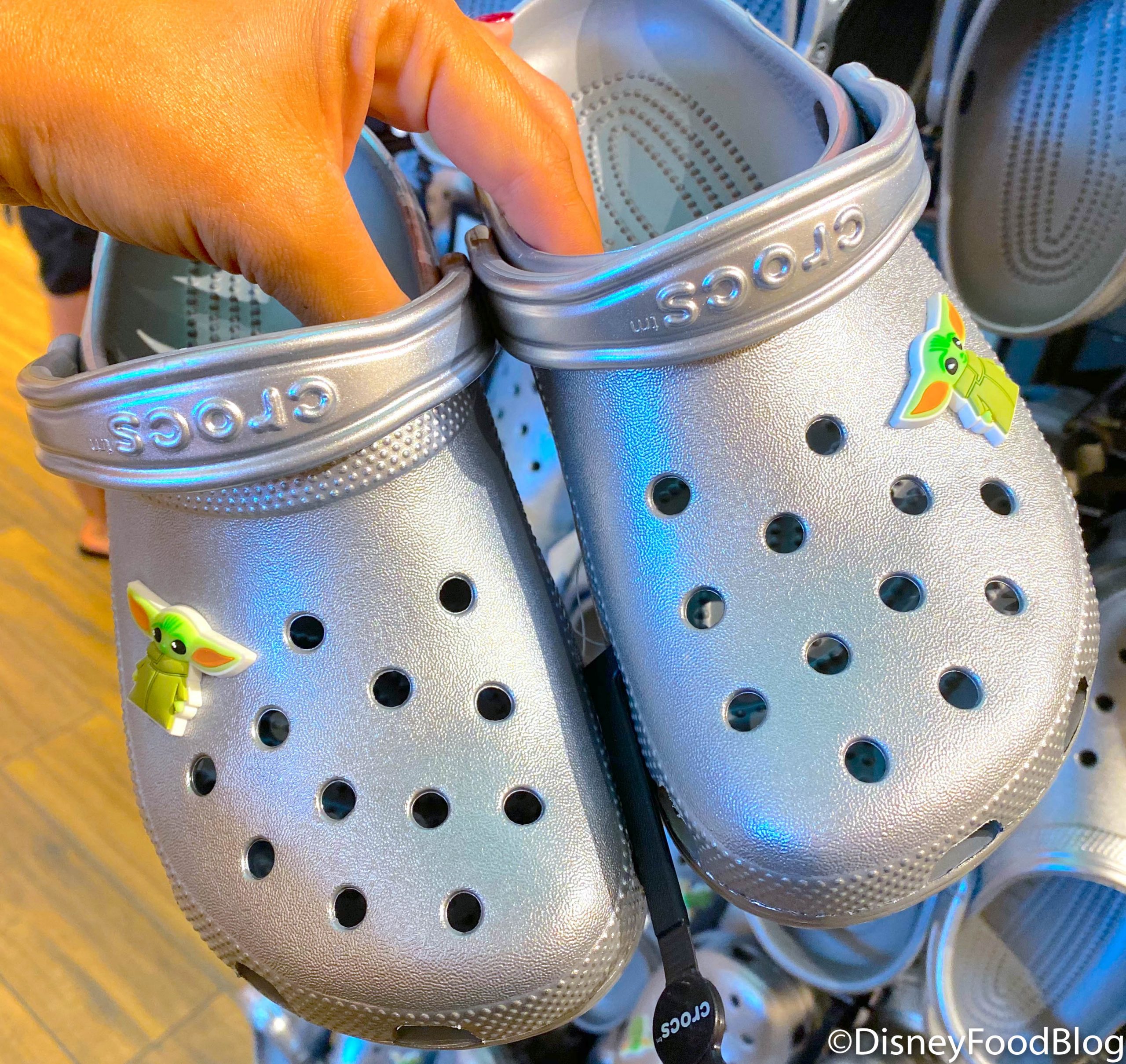 The sweet alien has taken over the World of Disney by storm in Disney Springs since the Baby Yoda Crocs have ARRIVED! The metallic Crocs remind us a lot of the Mandalorian’s suit or even Baby Yoda’s floating carriage…