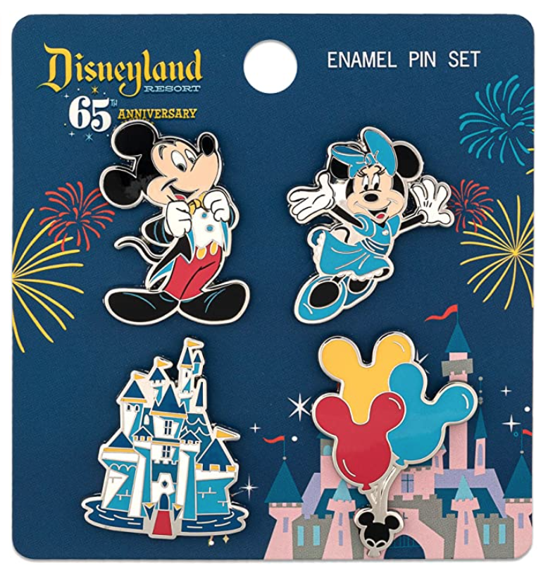 And, what’s a lanyard without some pins? You can fasten the ADORABLY dapper 65th Anniversary Funko Loungefly Mickey and Friends Pins that come in a 4-pack with Mickey, Minnie, Cinderella Castle, and Mickey Balloons for $20…