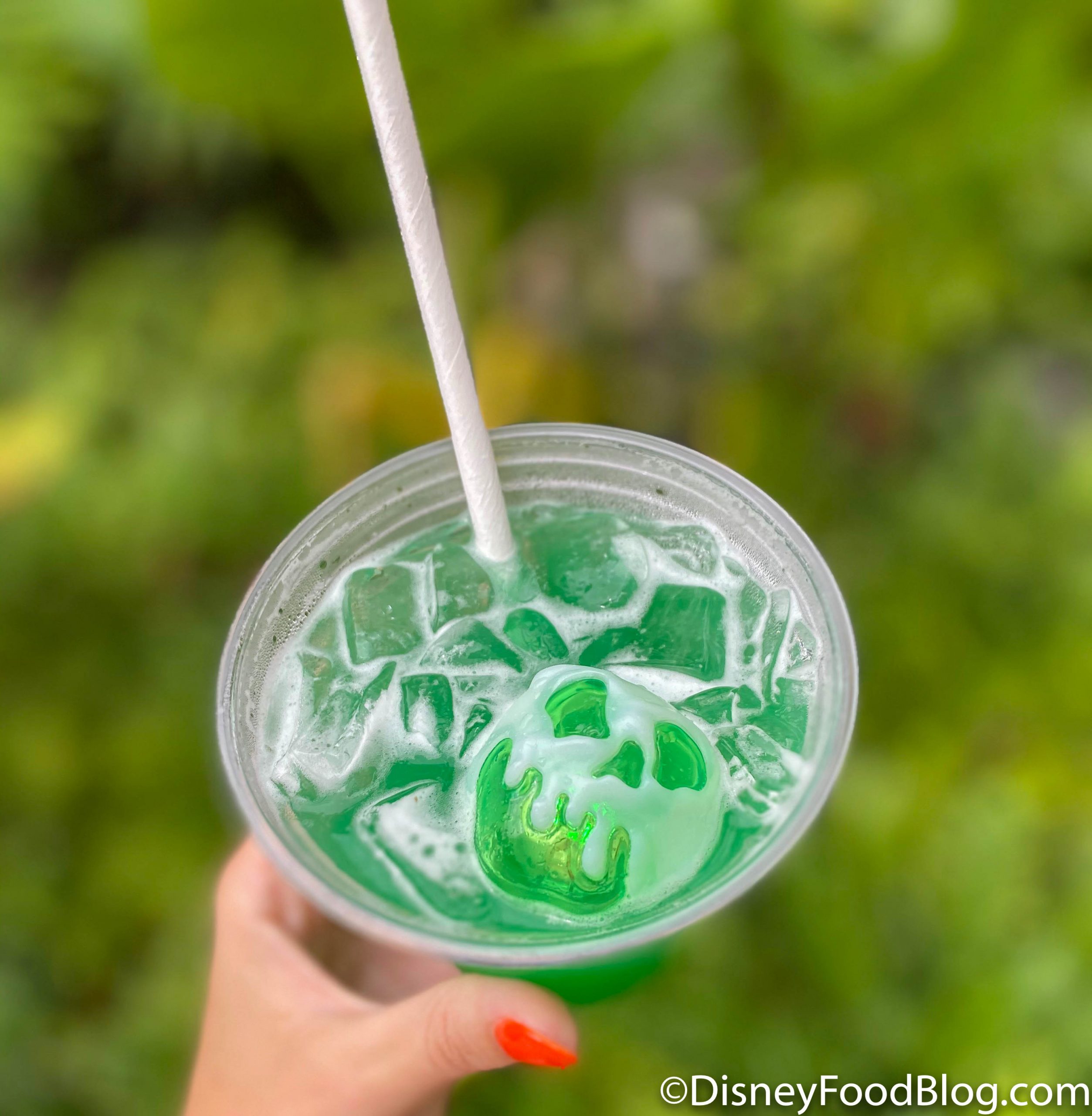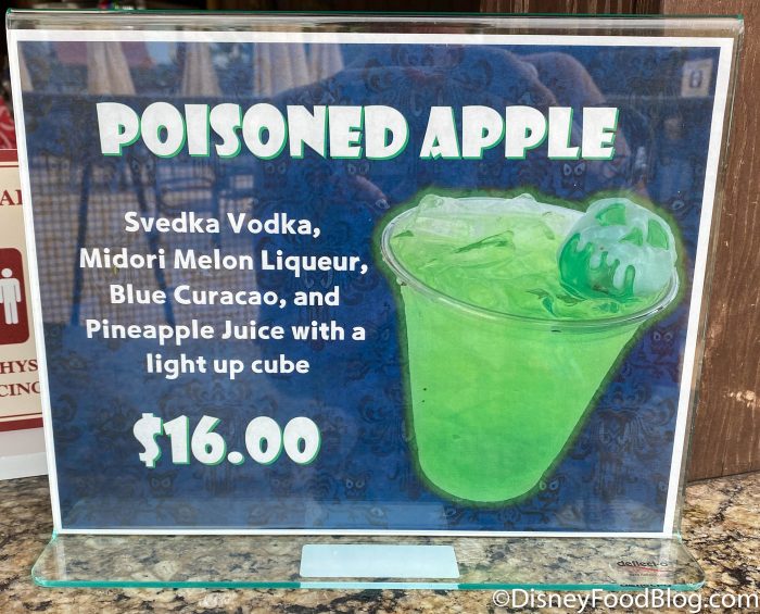 …and the Not So Poison Apple Cupcake in Magic Kingdom. Now, we’ve spotted another poisoned apple treat…but this time, it’s in drink form (and thankfully, it wasn’t actually poisoned)!