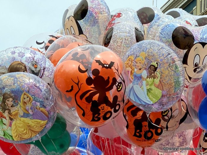 … right down to the assortment of Walt Disney World BALLOONS! Of course, balloons make a cheerful Main Street sight no matter when you visit Magic Kingdom. But right now, they are especially BOO-tiful!