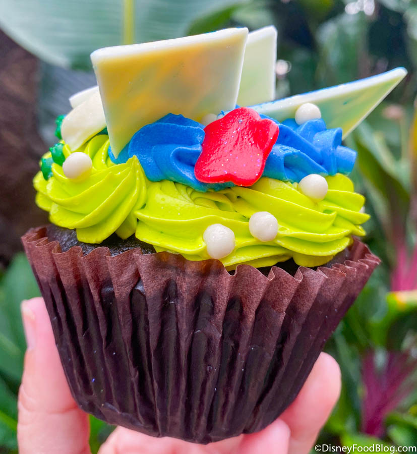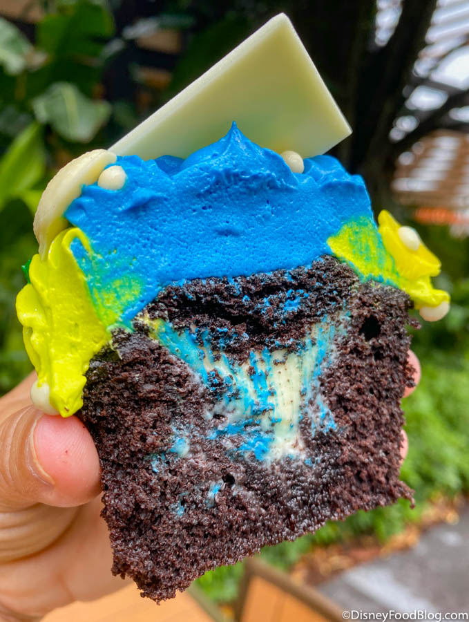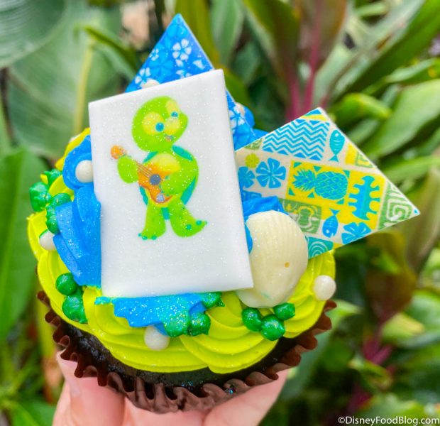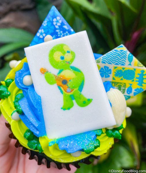 A couple of notes for you, though! While the ‘Olu Mel event is taking place at Disney’s Polynesian Village Resort TODAY, we’re not sure how long this little guy will be swimmin’ around Captain Cook’s cupcake case, so if you see one in the refrigerated case, grab it! And here’s an extra tip: We did NOT see the ‘Olu Mel Cupcake listed on Mobile Order. Sooo… we simply placed our Mobile Order for the Aloha Cupcake — which is still available — and asked that it be switched for the ‘Olu Mel, and it was no problem, since both are the same price of $5.99.