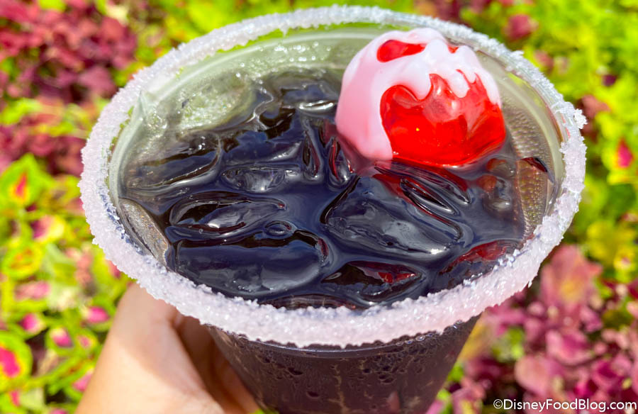 The Black Magic Margarita has RETURNED to Disney Springs this year! You might remember this treat from last Halloween. And it’s actually pretty similar to the Valentine’s Day Black Heart Margarita — which we also love!