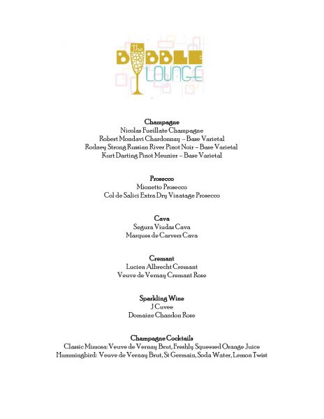 The drink menu is where we get all our bubbles! There’s plenty of Cava, sparkling wine, and Champagne Cocktails to go around!