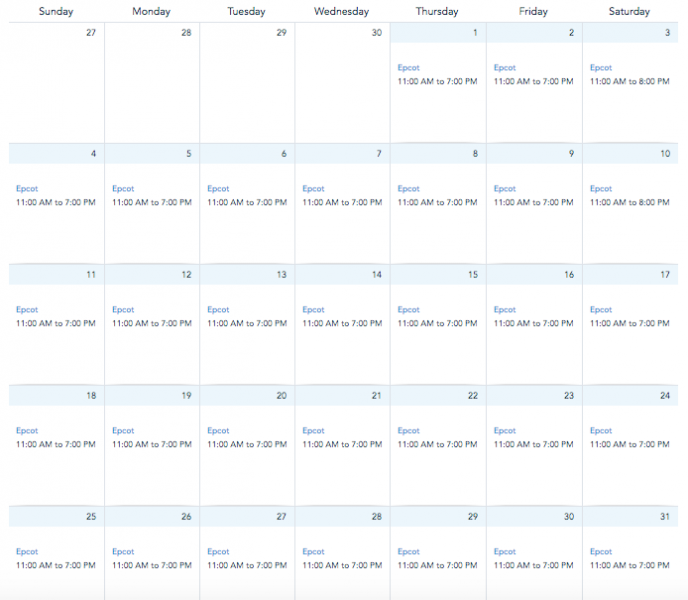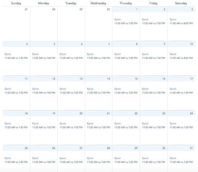 Currently, the park’s operating hours are still listed as 11AM-7PM for all other dates throughout the month.