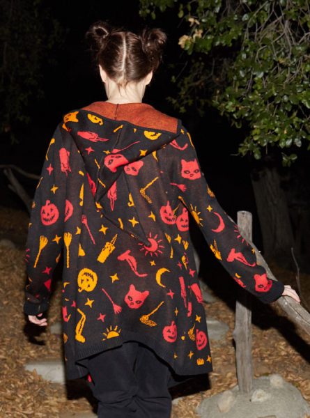 In addition to the Mickey and Minnie merch, there’s a Dani-inspired cardigan decorated with colors and shapes reminiscent of her cute witch costume. It’s got pumpkins, suns, brooms, and cats, and the front even billows like a witch’s cloak!