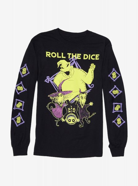 The shirt may say “roll the dice,” but you’re 100% certain to feel like a winner in this The Nightmare Before Christmas long-sleeve shirt! The black men’s shirt has Oogie Boogie in all his spooky glory, along with Oogie’s Boys, and dice along the sleeves!
