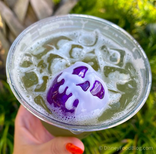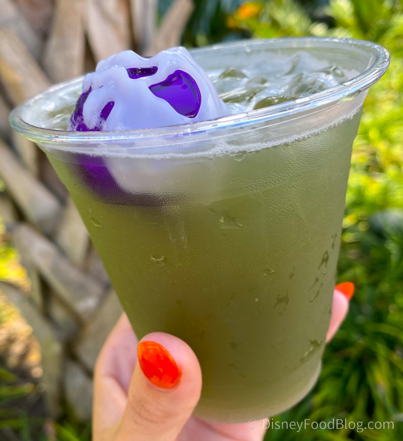 The Cast Member we spoke to didn’t have the drink yet in the system at Banana Cabana, so she didn’t know its real price. Instead, she charged us for a Mai Tai, which is $13. If YOU get this spooky concoction and it looks more like the promotional photo, let us know!