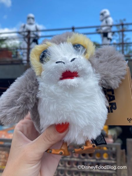 But there’s another cute little creature in the Star Wars universe deserving of some shoulder plush love — there’s a NEW Porg plush we spotted at Star Wars: Galaxy’s Edge!