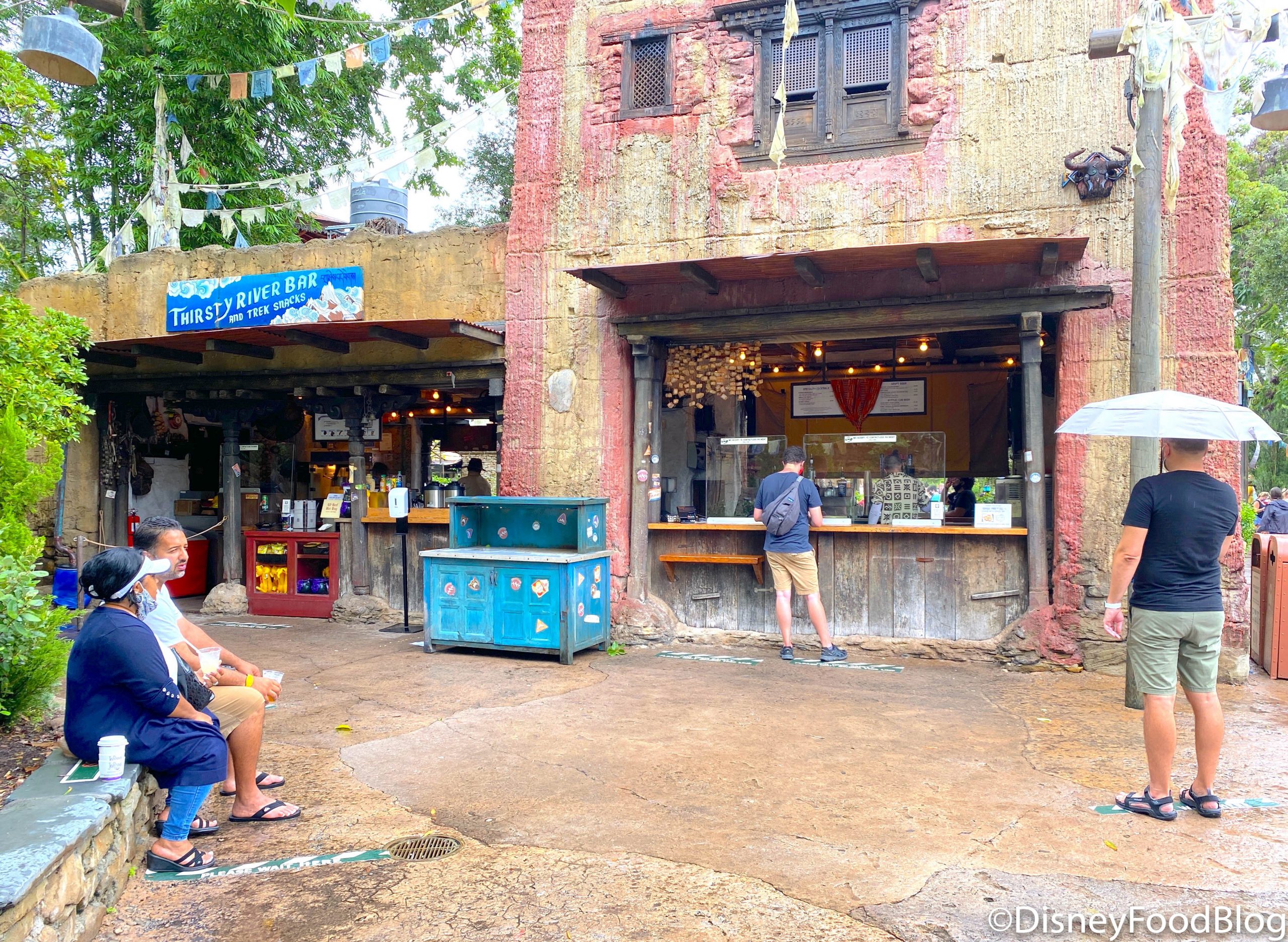 You might know Thirsty River Bar and Trek Snacks as a great spot to grab a cool drink while you’re walking around Asia or home to some GREAT chocolate chip cookies. However, the quick-service location is operating differently than we’ve seen it before now that there are distancing measures and new health guidelines in place.