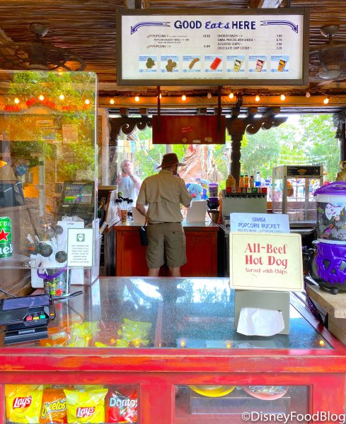 Previously, guests could come from either side of the stand to pick up drinks, but the side opposite of Expedition Everest is the only area available for guests to visit. However, BOTH sides of the Trek Snacks portion of the quick-stop spot are currently open.