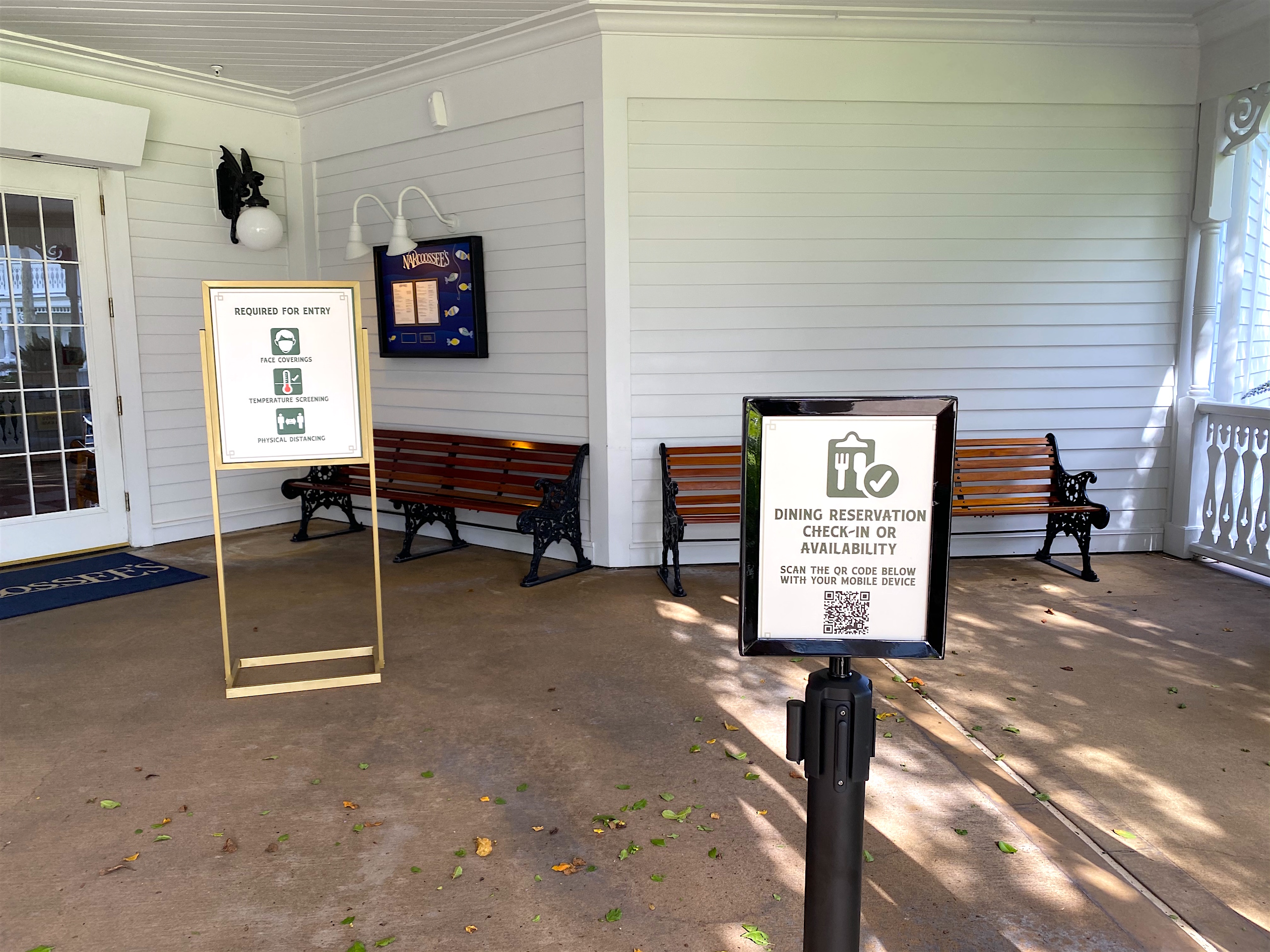There were signs outside of the restaurant reminding guests of the new health and safety procedures, as well as a sign with a QR code that allows guests with reservations to use Mobile Check-In.