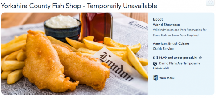 But, over the weekend, our friends over at Touring Plans posted a story on their Instagram account noting that Yorkshire County Fish Shop was open!