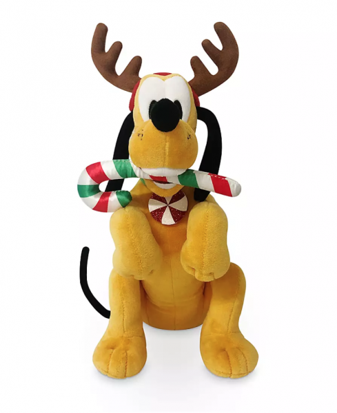 Since we’re talking favorite pals with holiday headwear, next up is Pluto, sporting some antlers and carrying his own candy cane. Pluto is a very good boy, sitting up at attention he measures 12-1/2″ tall and costs $16.99.