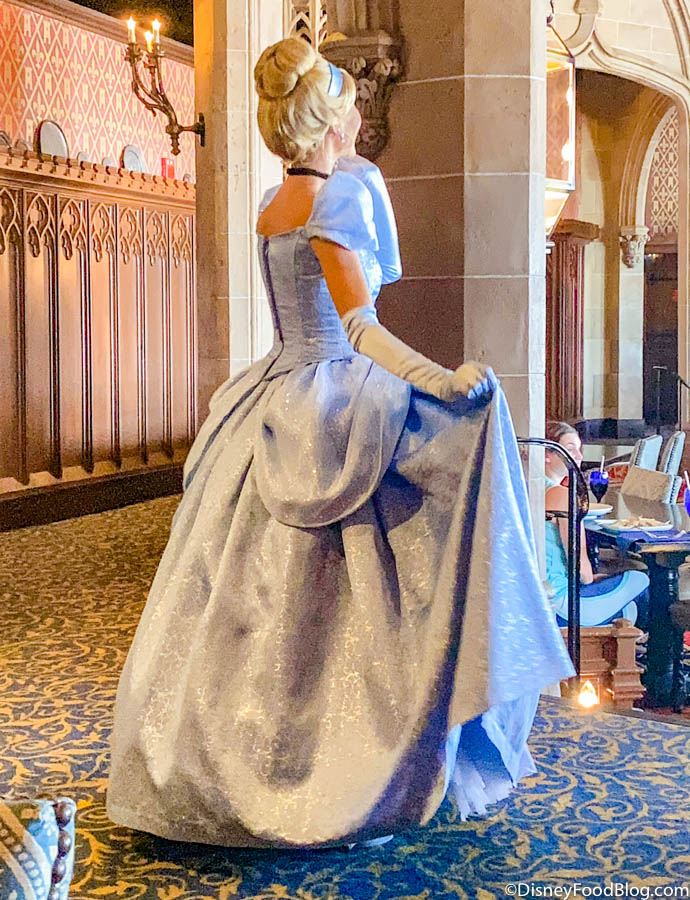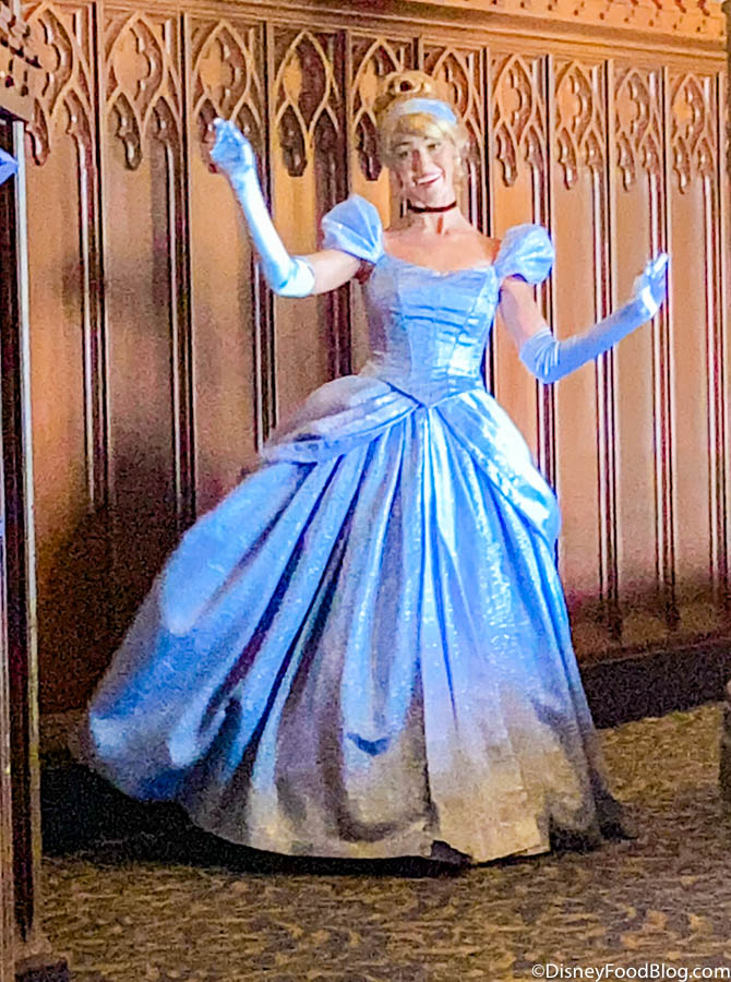 Yes! It’s Cinderella, herself! When Cinderella’s Royal Table announced its reopening, they noted that there would be NO character interactions during the dining experience (which made us a little skeptical of the still-too-high cost).