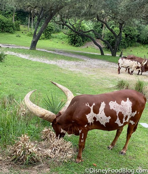 We couldn’t take you on a trip to Disney’s Animal Kingdom without a few animals! When we hopped on Kilimanjaro Safaris this trip, we spotted some Ankole Cattle…