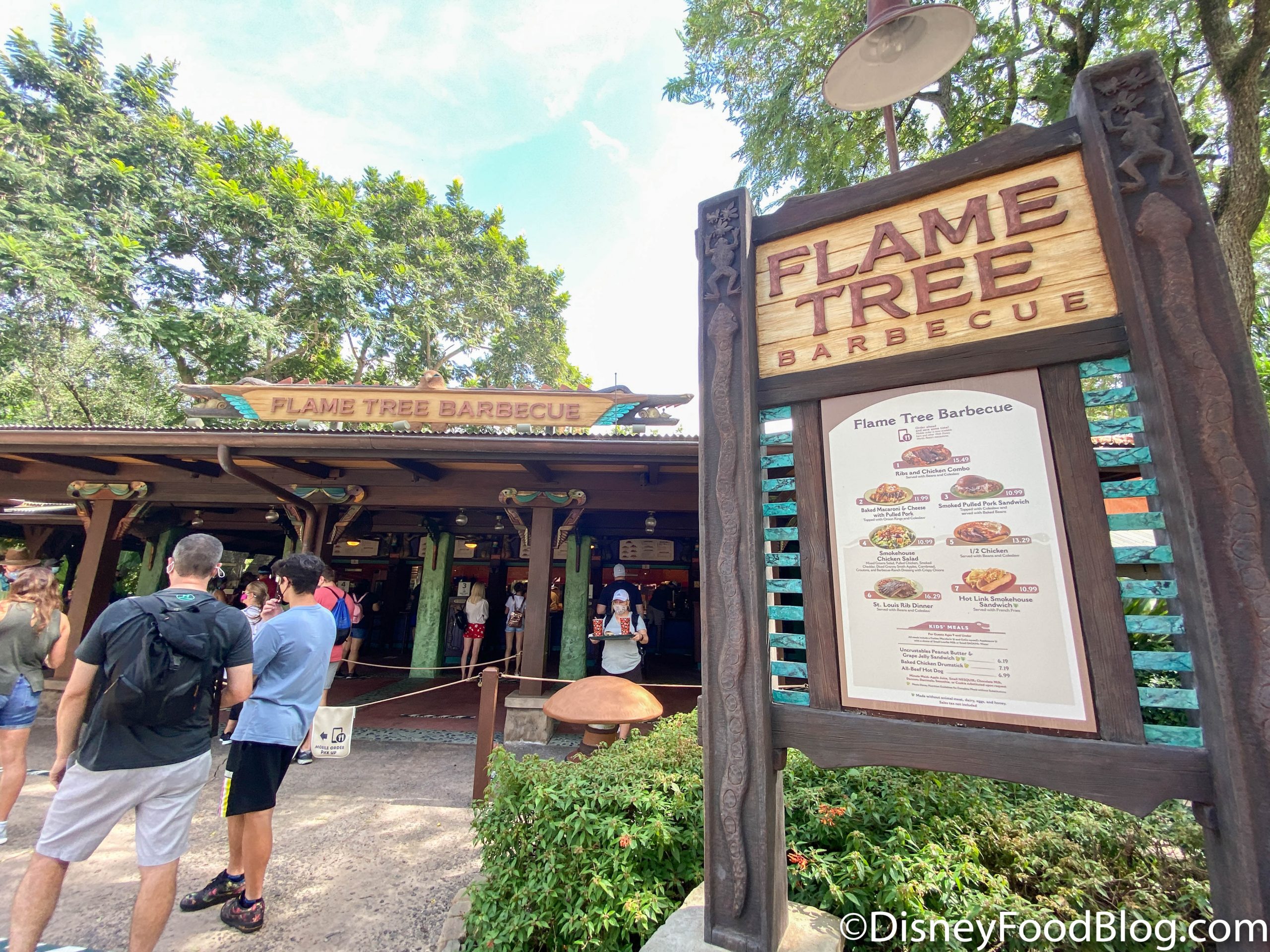 Back in the Discovery Island portion of the park, we stopped by Flame Tree Barbecue. While we didn’t spot anything new on the menu, we did see that there were some new signs in the area that include pictures and descriptions of the items available.