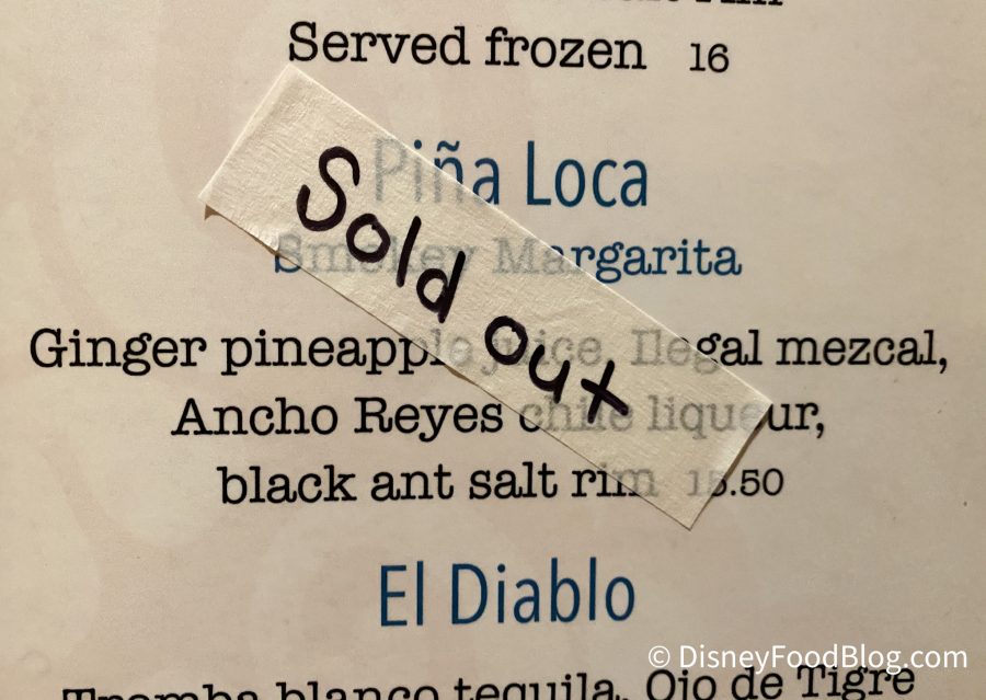 Across World Showcase, in the Mexico Pavilion, we learned on our last trip that La Cava del Tequila was temporarily sold out of pineapple juice!