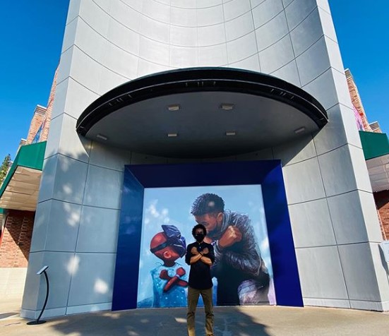 Today, the new mural was unveiled in Downtown Disney with concept artist and former Imagineer Nikkolas Smith standing by for the reveal. Smith created the piece in the hopes of honoring the life and legacy of Chadwick Boseman. The mural depicts Boseman and a youth cancer patient sharing a moment.